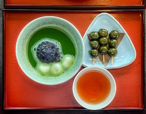 A real treat awaited us at Tsuen Tea House. Stepping into the world's oldest tea house felt like traveling back in time. The woody aroma of aged tea leaves filled the air as we sipped brews perfected over generations. Lunch was green tea soba noodles with smoked herring – a must try! And dessert accentuated the green tea, with a shave ice bowl as well as another set of sweets.